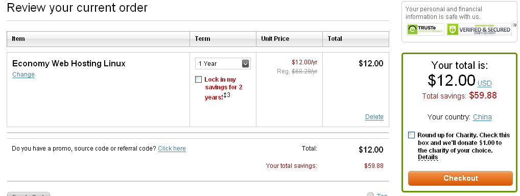 注意:1、此优惠码只针对经济型方案虚拟主机一年付。购买其他方案或者其他周期均不支持。如果你需要购买其他方案建议使用优惠链接www.gd30off.com,www.gd30off.com优惠链接是针对Godaddy所有虚拟主机方案的,在官方优惠价基础上再优惠30%。