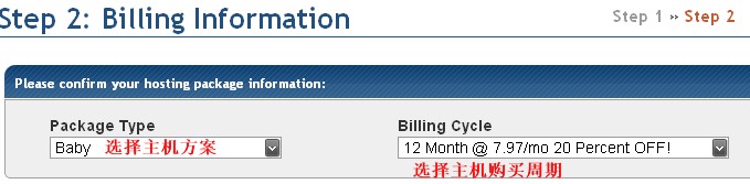 四、如图,再次选择你要购买的主机方案,然后选择要购买的主机周期。