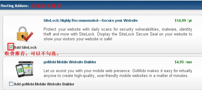 七、继续往下是HostGator官方推荐的产品,这些产品是收费的,如果不需要的话建议将产品前的勾选去掉。